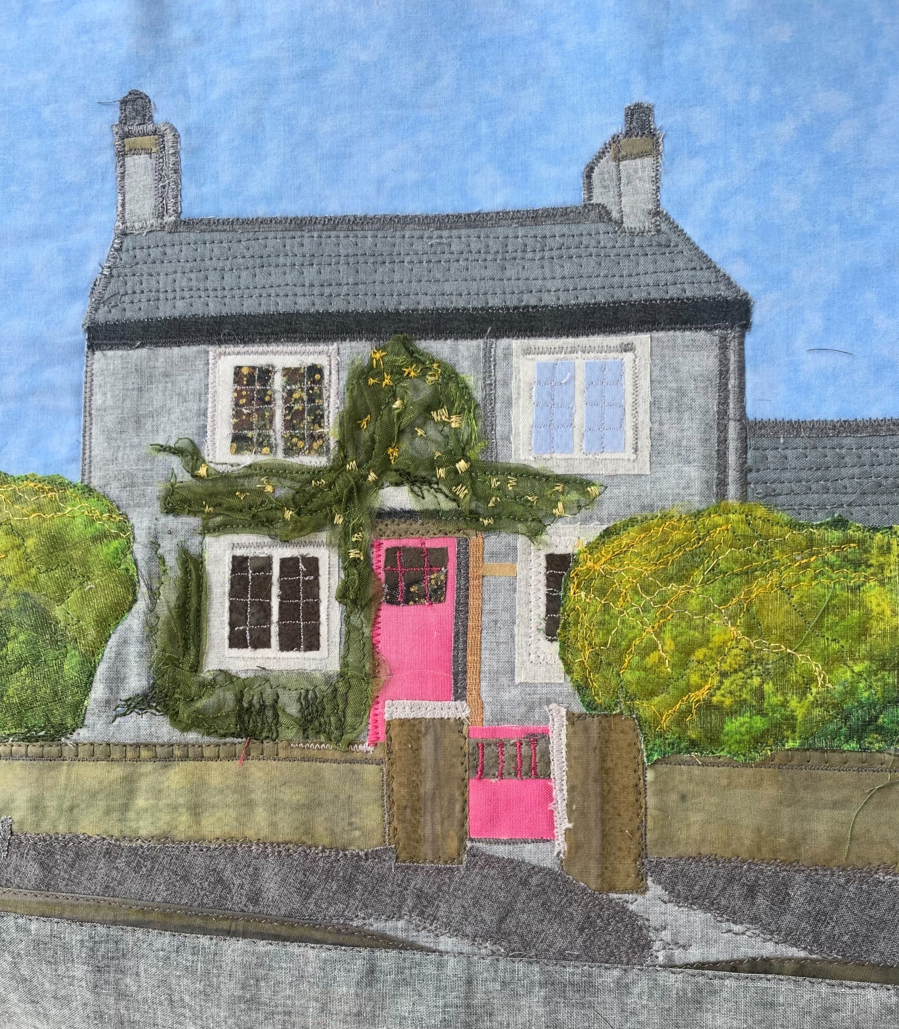 I accept commissions for personalized pictures all created from different layers fabric appliqued and machine embroidered.